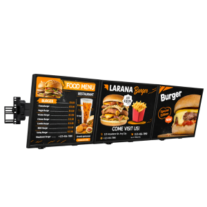 Idéal au-dessus du comptoir en restauration rapide ou brasserie. Affichage des formules, prix et produits phares en grand format.