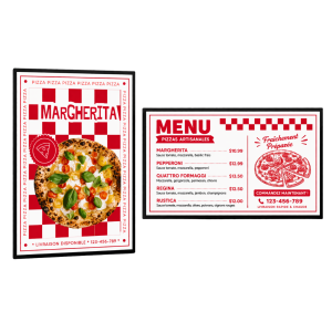 Valorisez vos spécialités, promos en cours ou ambiance de votre établissement directement à table ou sur les murs.